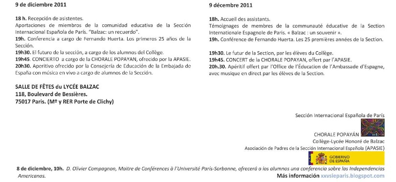 25 ans de reconnaissance officielle de la Section Internationale espagnole de Paris, mais déjà 27 ans d'existence.