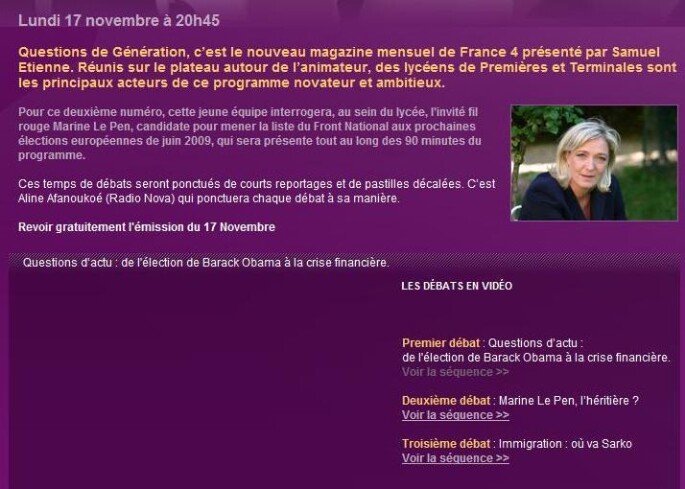 Deux vidéos à télécharger : une courte de présentation et une très longue d'une grande aprtie de l'émission.
