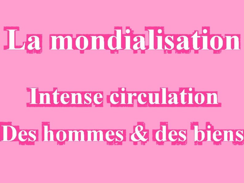 La grande divison du monde oppose aujourd'hui le Nord et le Sud. La Triade ( EU, UE et Japon) sont dominants. Mais la mondialisation à la fois profite au nord et le fragilise en même temps quelle redistribue les cartes au Sud.