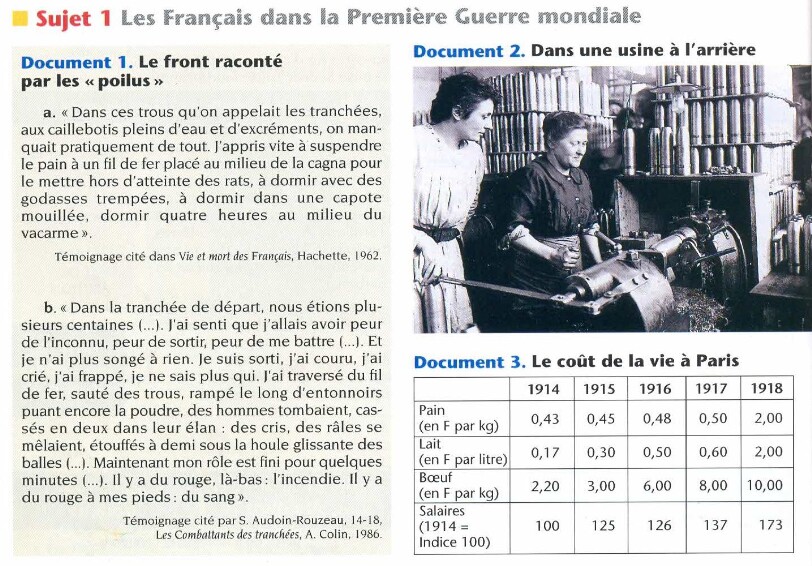 Prenez le cours à coté de vous : le sujet correspond au II du cours (soit la description de la guerre) et surtout le IIb (le front) et le IIc ( l'arrière).