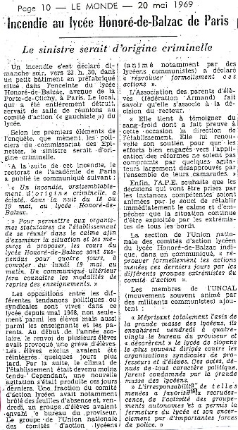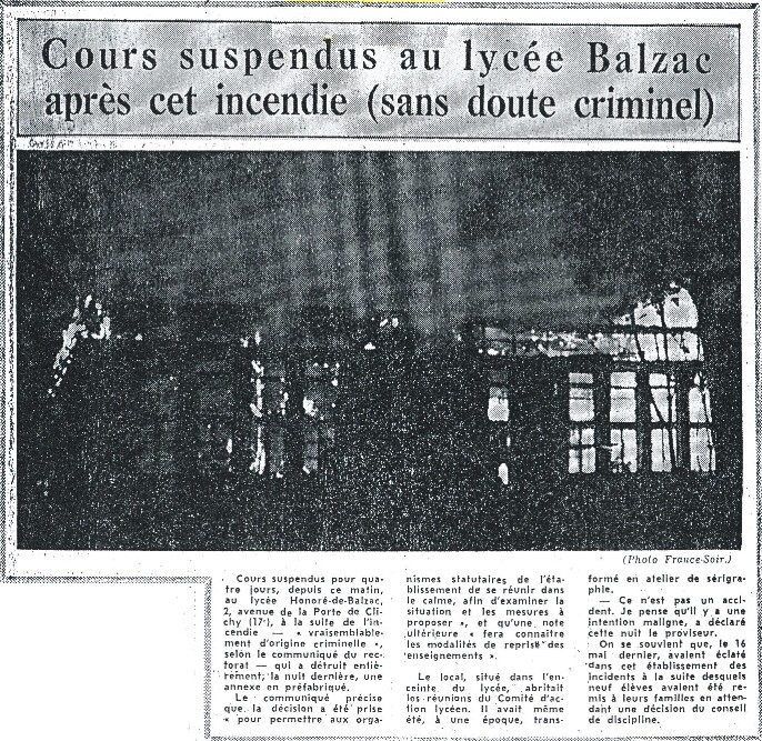 La nouvelle rentrée semble démarrer dans le calme, mais à l’approche des vacances de la Toussaint tout se gâte. La cristallisation d’une nouvelle révolte à Balzac se fait d’abord sur l’éviction à la rentrée 1968 de certains élèves : l’administration insiste sur le fait que ces exclusions n’ont rien à voir avec l’action de ces élèves durant les évènements de «Mai 68», leurs camarades soutiennent le contraire. En dépit des bonnes volontés de certains, c’est le blocage. Le 5 novembre, le lycée est en grève, le 13, nouvelle grève avec réunion de 700 élèves du lycée, mais également d'éléments extérieurs, en salle de fêtes et l’agitation continue tout au long du mois de décembre. Le 13 janvier, c’est l’incendie des vestiaires du lycée…