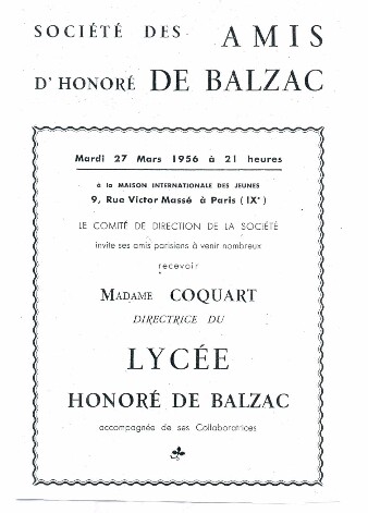 Et à l’inverse des liens étroits se tissaient avec l’illustre maître, étude de l’œuvre, concours, expositions, visite de la Maison de Balzac, contacts avec la Société des Amis d’Honoré de Balzac et parutions dans son Bulletin «Courrier Balzacien» etc …