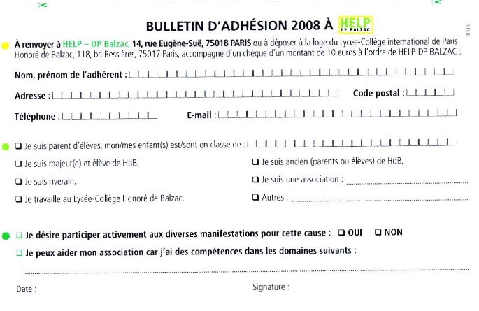 Depuis 1 an Help a bien avancé (voir pages suivantess) et a obtenu des résultats encourageants, mais il faut rester vigilant. Le bulletin d'adhésion ou de renouvellement reste le même (voir plus bas).
