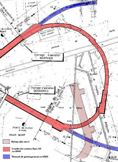 En 1976, débutent les travaux qui doivent conduire la ligne 13 bis de la porte de Clichy, jusqu'à la station Asnières – Gennevilliers en proche banlieue. Deux décrochements à partir de la boucle du terminus sont créés. L'un d'eux provoque la création d'un nouveau tunnel qui passe plus à l'est sous le collège